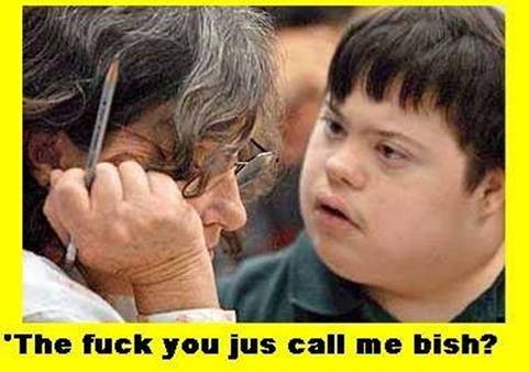 Quote from The Very End :Meh.. don't like jokes with people that have downs syndrome same...except that one wasnt too offensive unlike the other one...