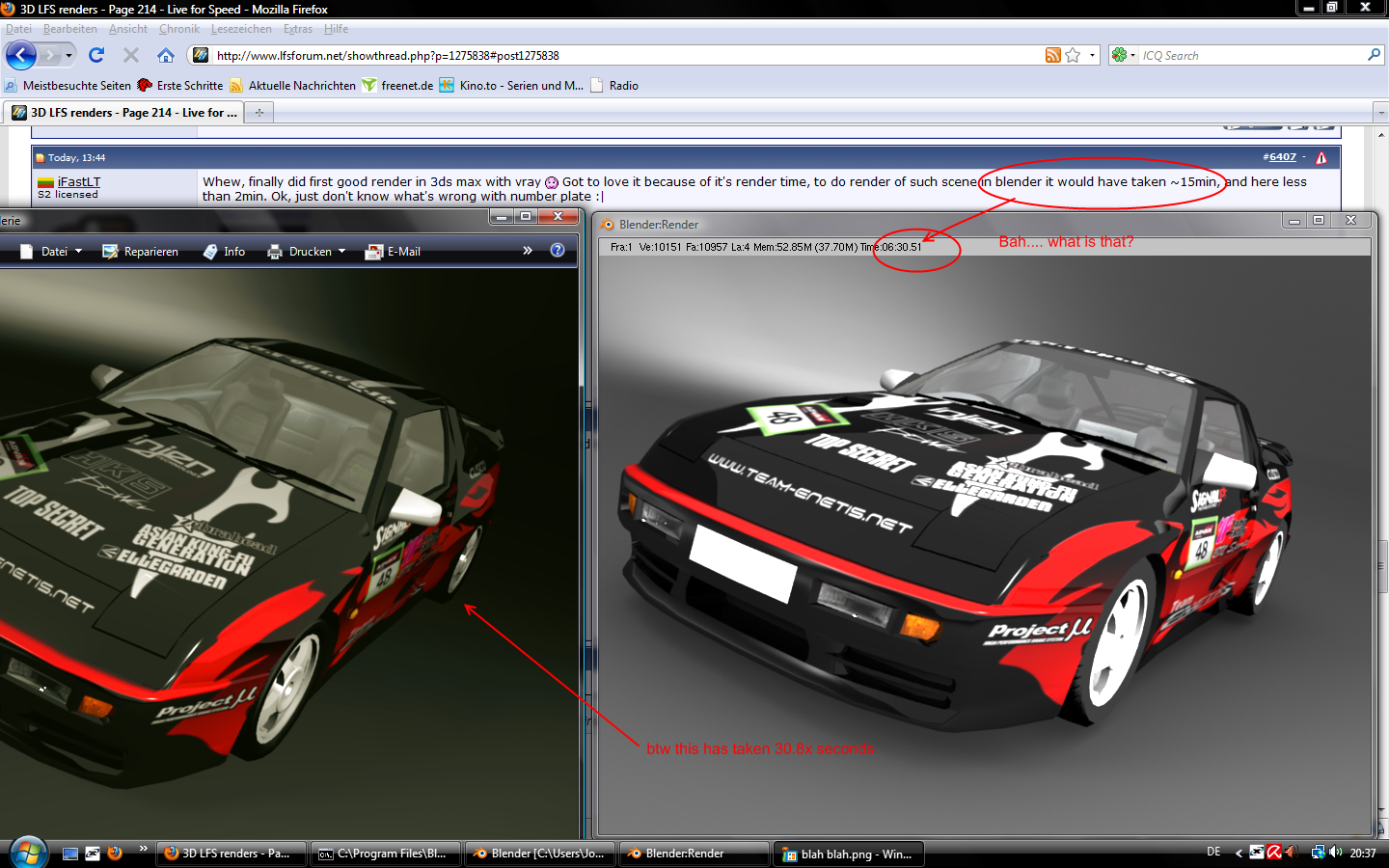 Quote from iFastLT :Whew, finally did first good render in 3ds max with vray Got to love it because of it's render time, to do render of such scene in blender it would have taken ~15min, and here less than 2min. Ok, just don't know what's wrong with number plate :|