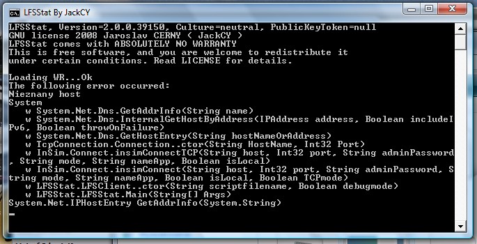 I get two types off error instead of connecting to LFS, dependig on IP i use in the config file: