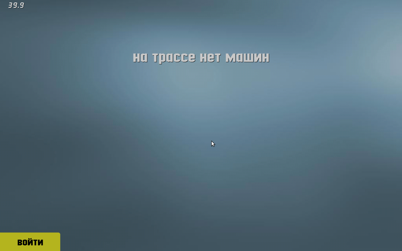 The sign reads: "no cars on track". Closed with Alt+F4.