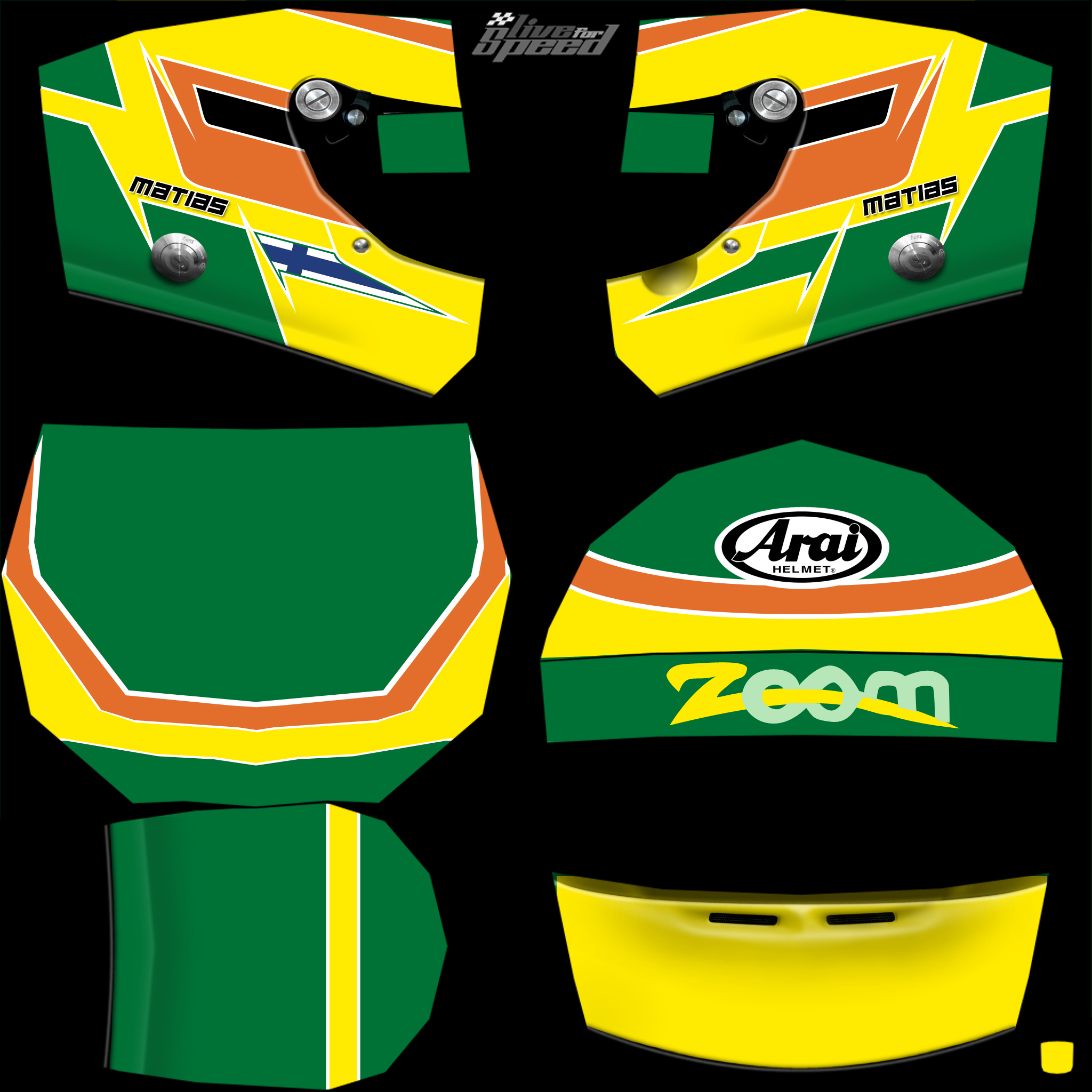 And could you make that helmet with that black colour as green, grey colour as yellow, and orange could be like that. There could be also lil bit black colour. And could someone make that visor like yellow and with visorsticker which says Zoom
