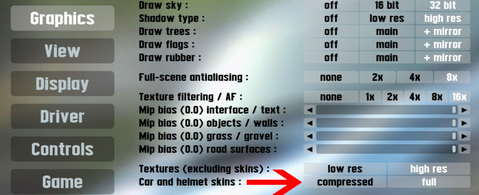 It seems the car textures and other various bits are very fuzzy in a non technical term. They look terrible and it's not on custom skins etc it's even on the prefab ones. I've reinstalled LFS with a fresh copy and got the same results.