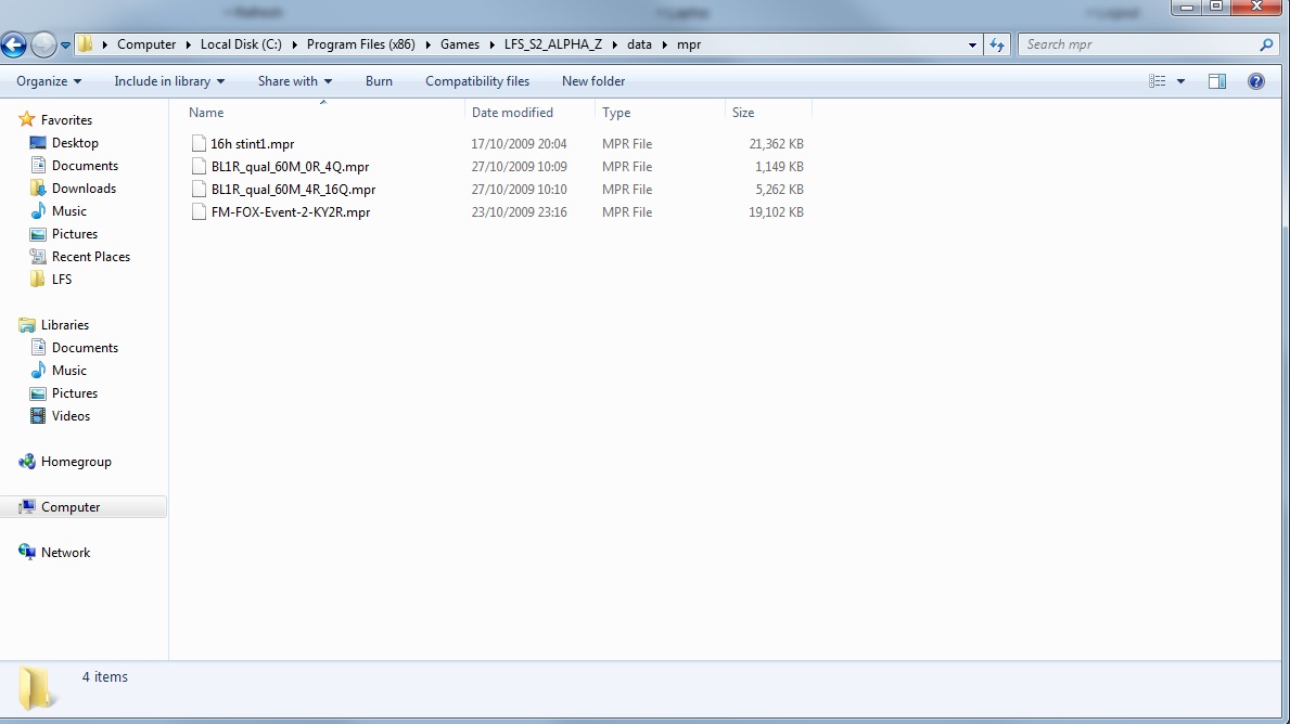 so i created mpr folder myself and added a replay to the folder shows up in lfs.