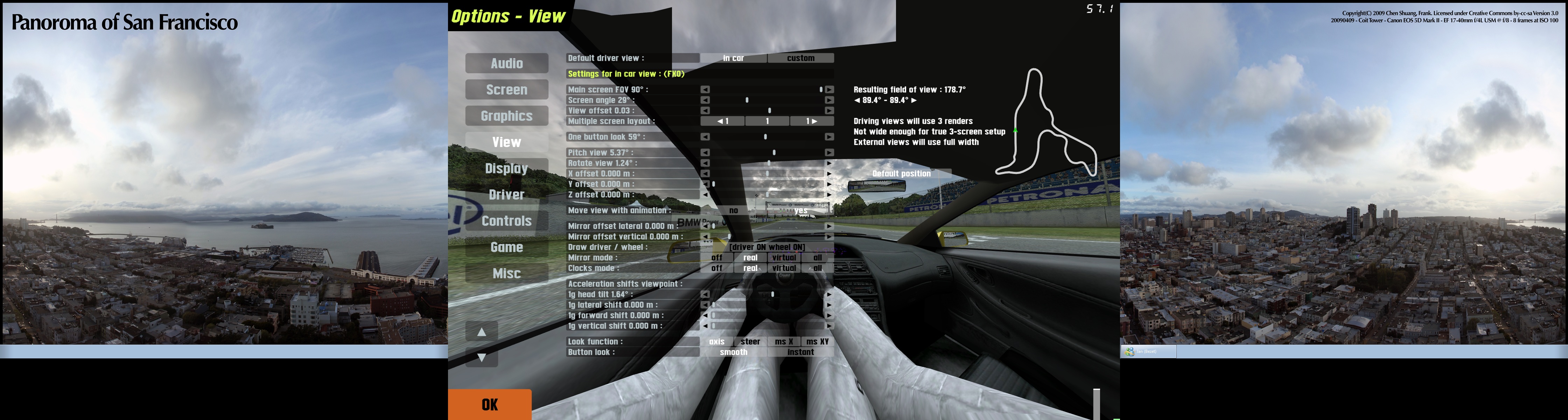 I'm using Full Screen in LFS. I switched on the option to use 2 monitors in LFS' options but my main display just showed a distorted image (like squashed onto the one monitor). So I switched to Windowed display (ALT-F4) and stretched it between the two. Immediately I got a crash to desktop.