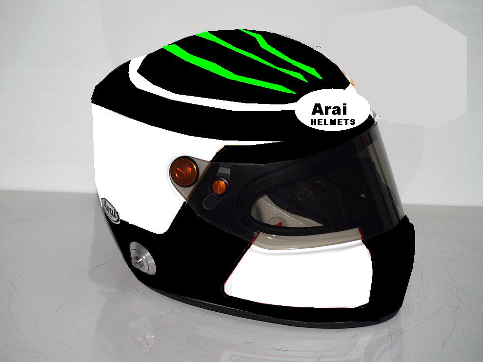 and Arai logo on the front and a finish flag somewhere