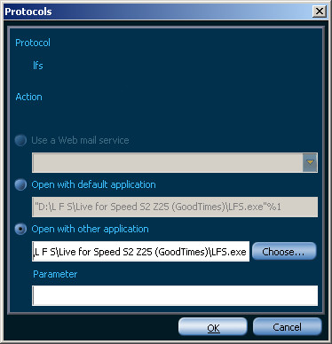 But if I add 'lfs' protocol in Opera manually, or edit the existing one (with the '%1') by tieing it to LFS.exe myself - then it works fine. Only then the grayed out location with '%1' remains visible and can't be deleted - an eyesore (attachment, don't mind folder name saying it's Z25 - it's patched to Z26). Would be cool if possible to fix.
