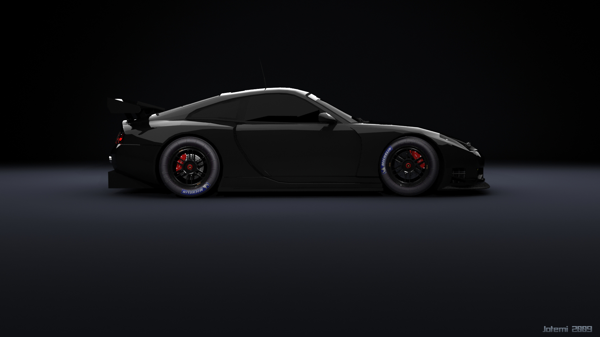 Please work on the rubber material a little more, as the tyres don't look like tyres. When I was into rendering I spent nearly ALL my time playing with the rubber, and eventually found settings (including displacement maps) that, at the time, I felt were better than anything else in the LFS scene. I'm sure I've since been surpassed, and I can't remember my settings anyway, but the tyres make or break a close up car image for me.