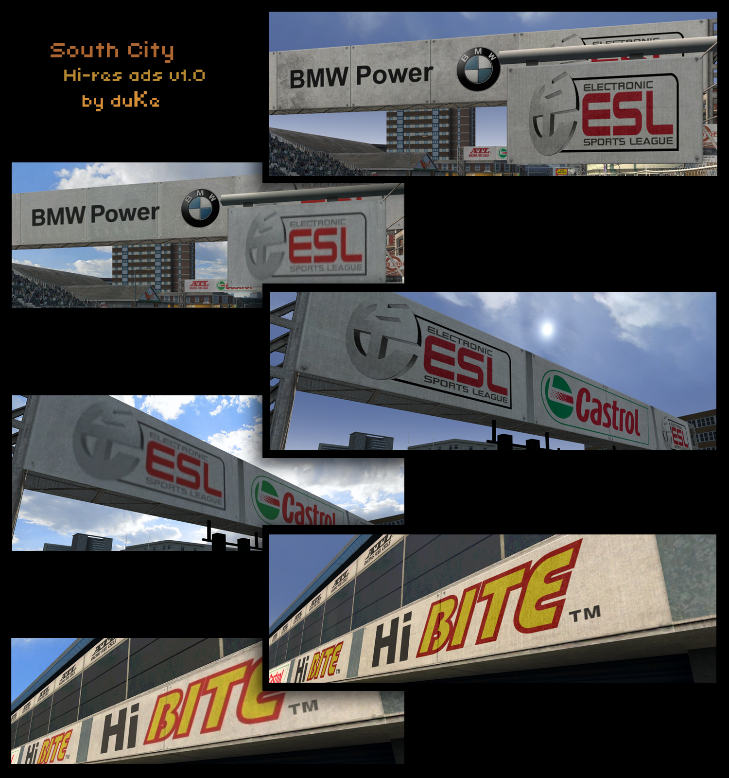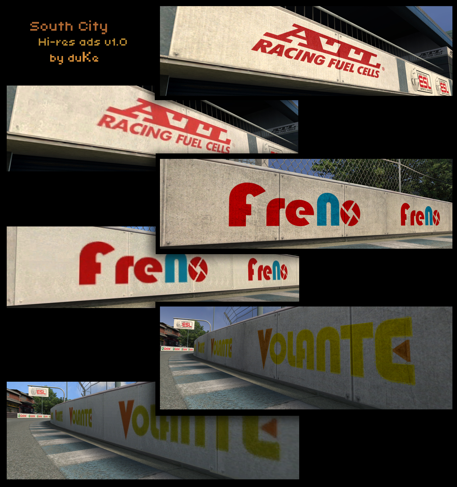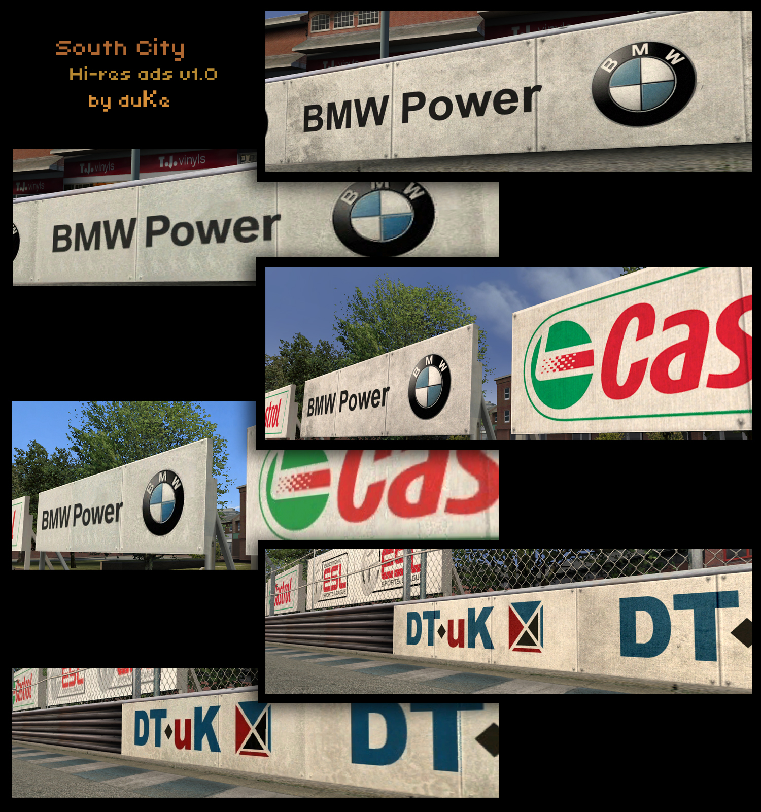 Well, after Electrik Kar/unseen released the High-Res Trax vol.1.1, South City and Fern Bay have looked, well, a bit blurry and mushy. And as no one has released a hi-res texture pack for SC or FB, I thought I'd finally do something about it. I started with the pic folder, and went with the adverts first. There are still two ads (lfs.de and racesimcentral.com) that I haven't done, so I'm not going to release my textures yet. But worry not, I hope to upload them by the end of the weekend. After I'm done the SC ads, I'll do the FB ones. Then propably move on to the dds folder.