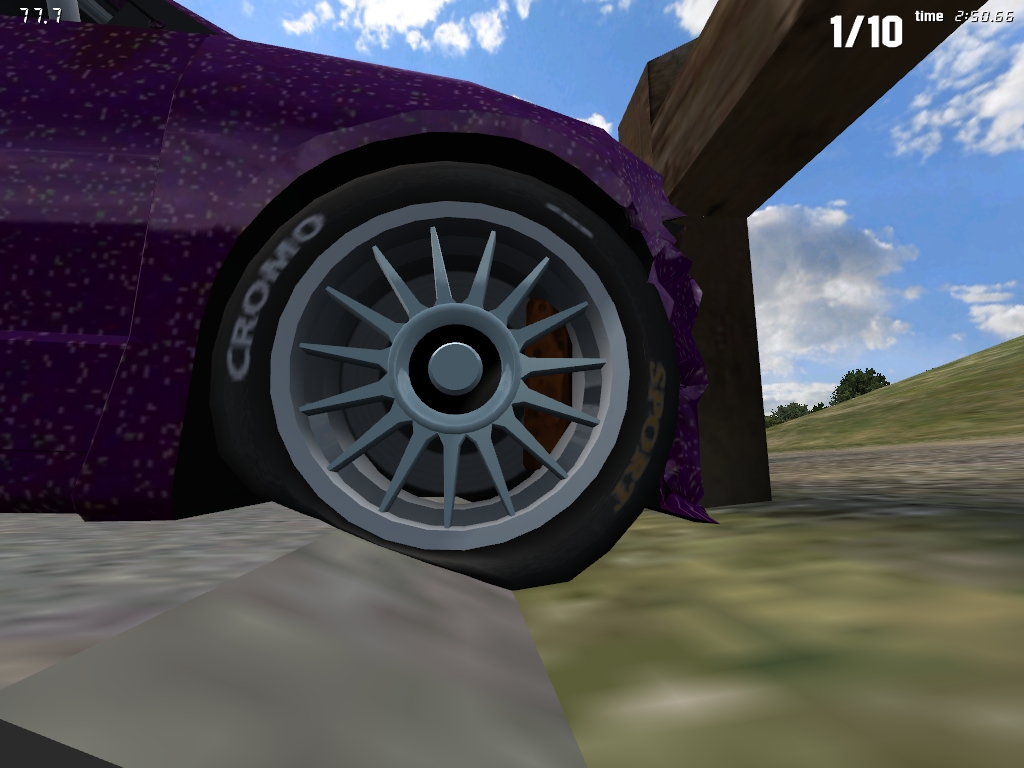 I was having fun and burning tires. Got all 4 flat.... Anyway... In Car Park I got to fence and couldn't get out of trench. But then suddenly, a BUG appears. The tires are not on the ground, they are... In concrete?