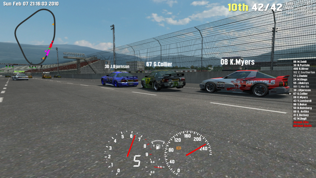 the practise session itself went quite nice, some people are still unexperienced at driving the oval and actually being aware(meh, who am i to talk) I'll see if i need to report anyone for not having mirrors.