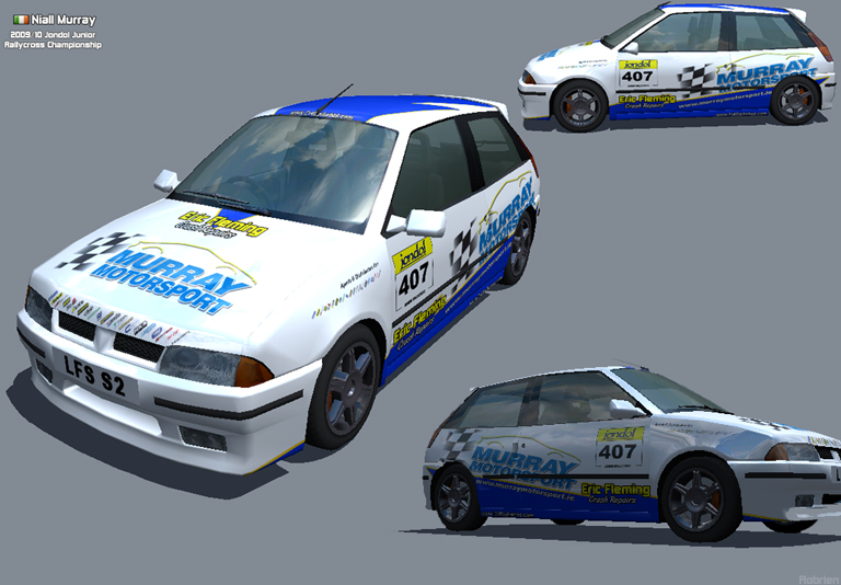 The car is my mates real life car. Niall Murray(n-murray) the lfs licence holder drives this car in real life in a championship over here for 14-17 year olds(Niall's 14). Each car has a 1.0 litre engine and Niall's car is a Toyota Starlet. Here is pics of it: