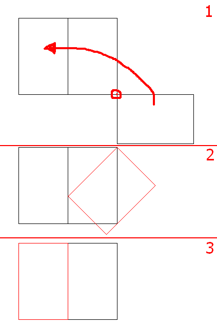 That basically shows how should the 3rd rectangle move. The red circle at the top of the image shows where the registration point of the 3rd rectangle is. In case you are wondering what a registration point is - Well, it's the point around which a specific object rotates, and which specifies the object's X and Y coordinates(Z too, but that's totally unnecessary in this case).