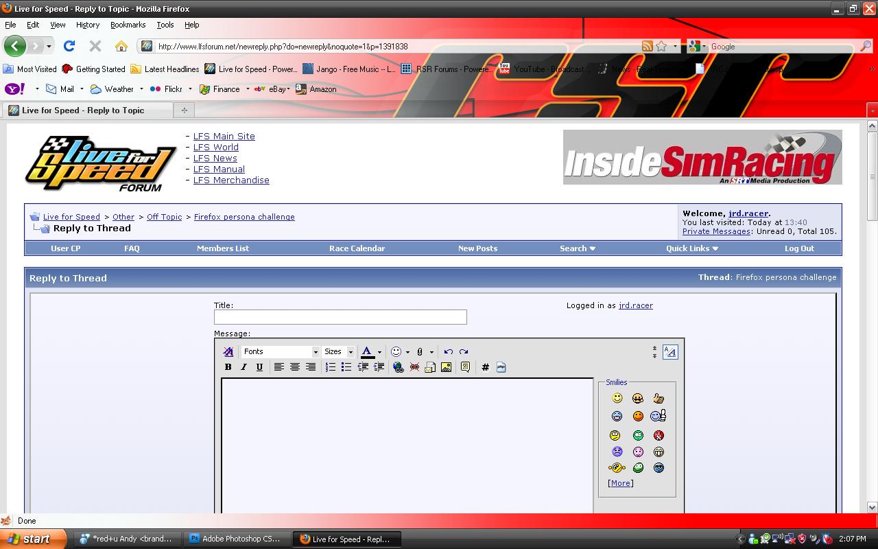 i have a challenge for people....just make a persona with either an LFS theme, or just a sweet racing or car theme...i want it to be acceptable because when people see my browser i dont want them to think im some LFS obsessed freak (even though i am )