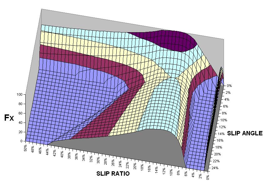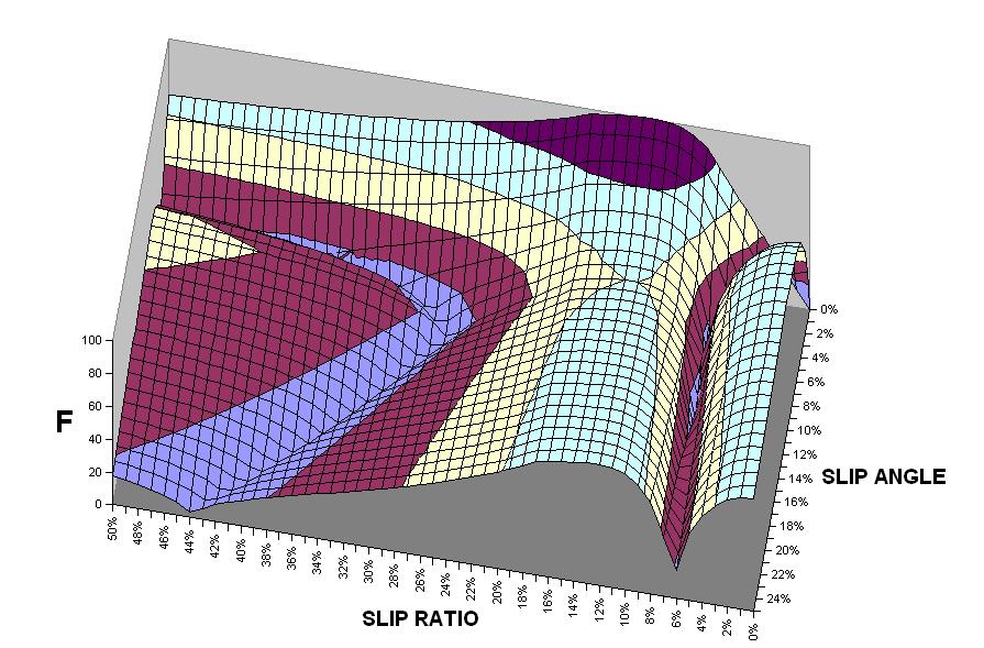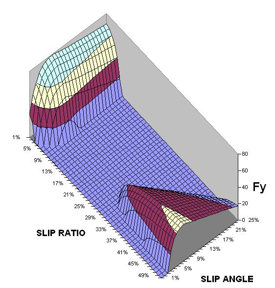 oh nows, this diagram shows in one half of the quarter Fx in function of SlipRatio and SlipAngle and in other half Fy in function of SA and SR. Frankly speaking there should be 2 such diagrams connected in result giving one plane with F combined, but in terms of simulations those 2 would be needed more. Those could be obtained... empirically?