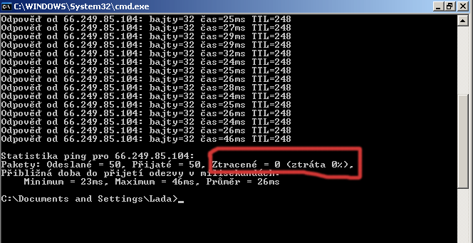 You should then see a small test running and it will show you at the end number of lost packets and min,max,average ping.