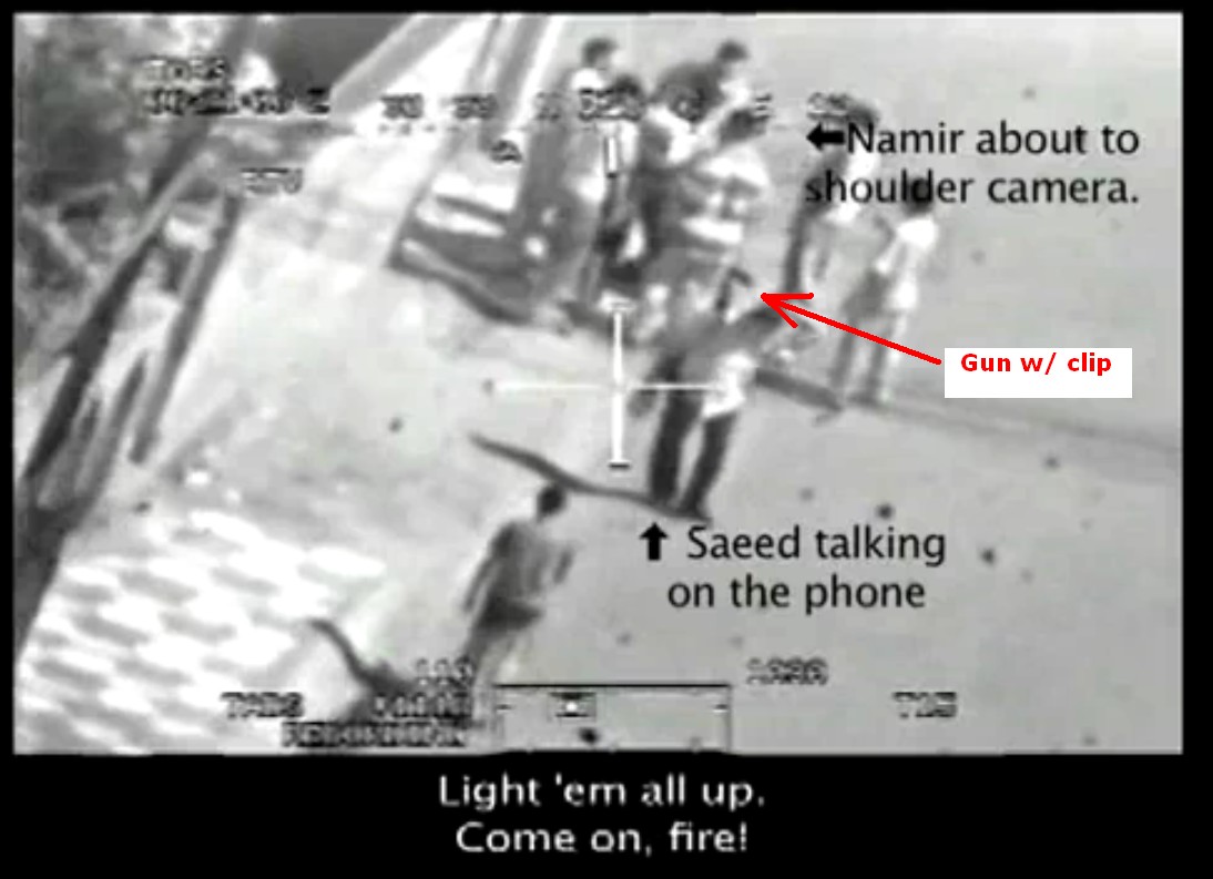 Me too. Actually I haven't seen the short version. In the full video I really thought they had weapons and rocket launchers. I didn't see many weapons thought, just a few, but they seemed like a gang, and I guess I'd have shot them too. That one guy (with the camera) was in a very, VERY suspicious position (as if he was going to shoot, hiding behind the wall and looking back, in the direction of the helicopter), and by the time I first watched the video I was very happy to see the army managed to neutralize them. When I saw the guy on the van, I thought "OH NO HE THEY'RE BRINGING REINFORCEMENTS! quick, give your team permission to fire before they run away!". I was actually hoping they could get permission to shoot because for me, while watching the video for the first time, I was certain that van was a real threat.