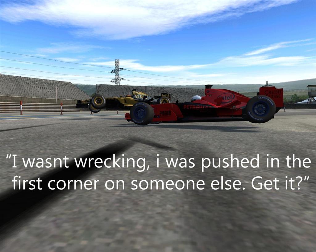 I wasnt wrecking, i was pushed in the first corner on someone else. Get it?