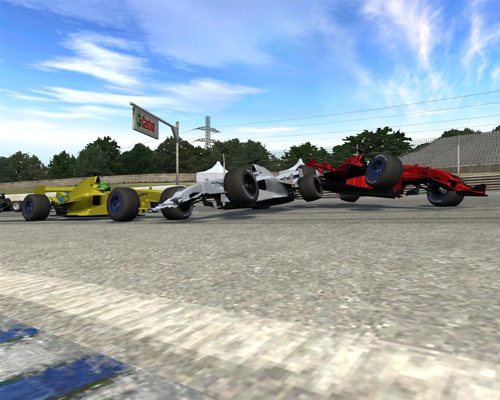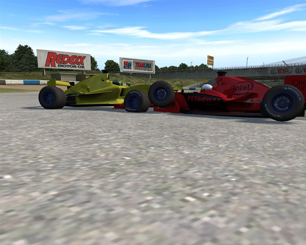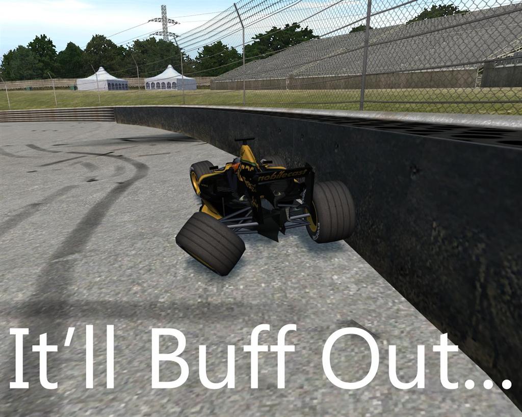 After you got lapped bcos you couldnt control the BF1, at T1 on lap 5 you hit him at 180 while he was at 75, and if you dare that was a minor crash then hear this. As you hit him you pulled 55 g's! So that means at the point of impact your car weighed (in effect) 29 tons! You think thats bad? NNP had 7 Gs landing from being launched into the air, and when he finally hit the wall he experienced 77 G's making his car weigh (in effect) 40 tons!