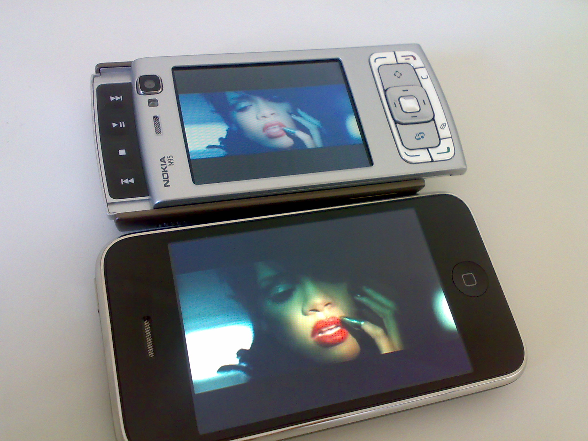 TV output: Even though the N95's screen res is 320x240, its TV output is 640x480, and also outputs widescreen. You can play up to 640x360p videos, movies or anything else on your 16:9 TV, or 640x480p on your 4:3 TV. But that doesn't mean it doesn't playback videos at higher resolutions; By using other media players (such as CorePlayer, DivX player or UCPlayer) I could open and fully watch 780x480 .avi, .wmv and .divx videos without lag and without converting them for use on the phone; I have directly downloaded them from the internet to the phone and playback on the phone. I haven't tried higher resolutions though, and the default media player won't play higher than 640x480 videos from the tests I made, but does playback very well high bitrates (such as 12mbps and higher).