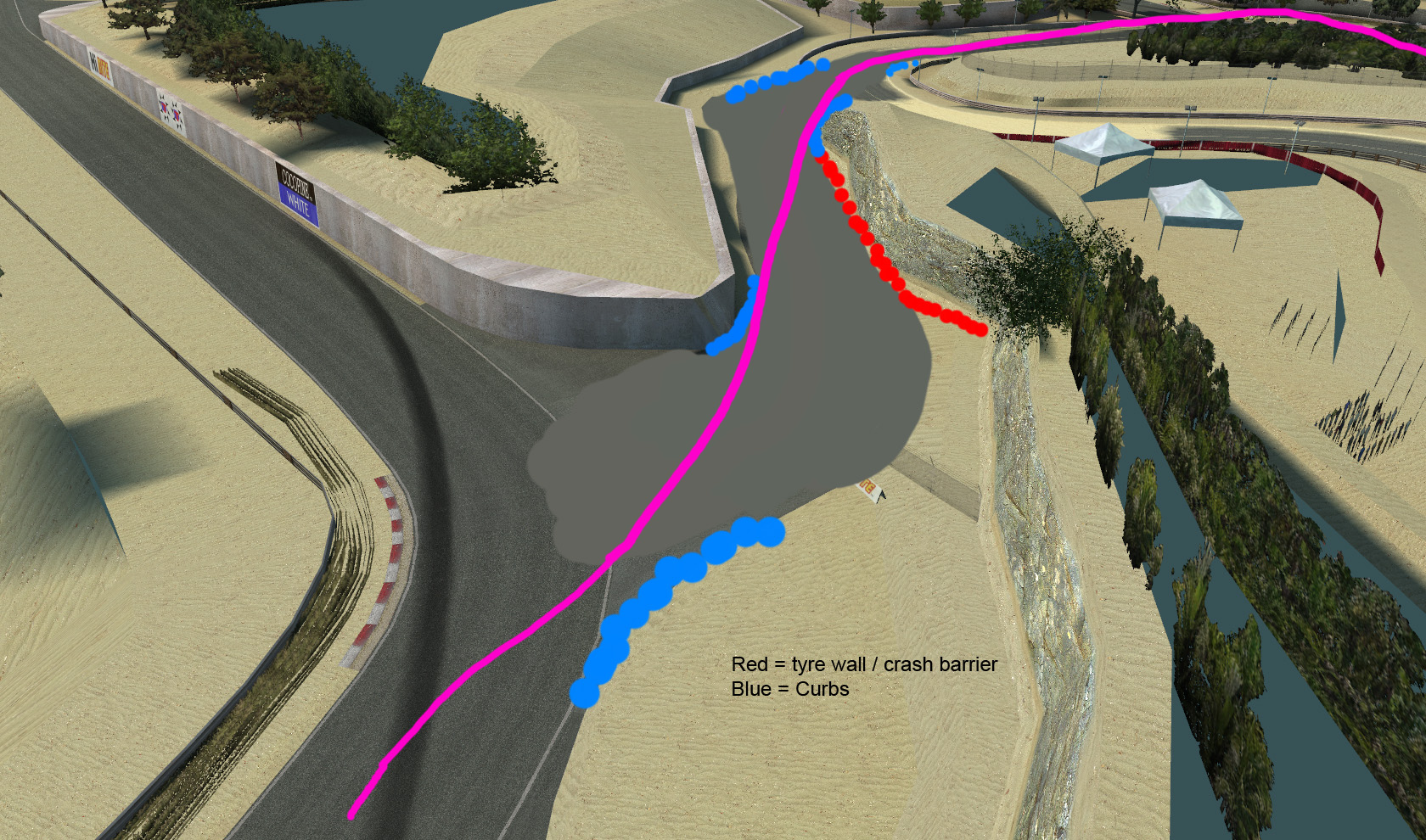My idea is to combine some of the elements(turns and similar track sections) of the Nürburgring into a track that has a section that goes up and down a mountain. That way you also get your hillclimb tracks and a forest road.