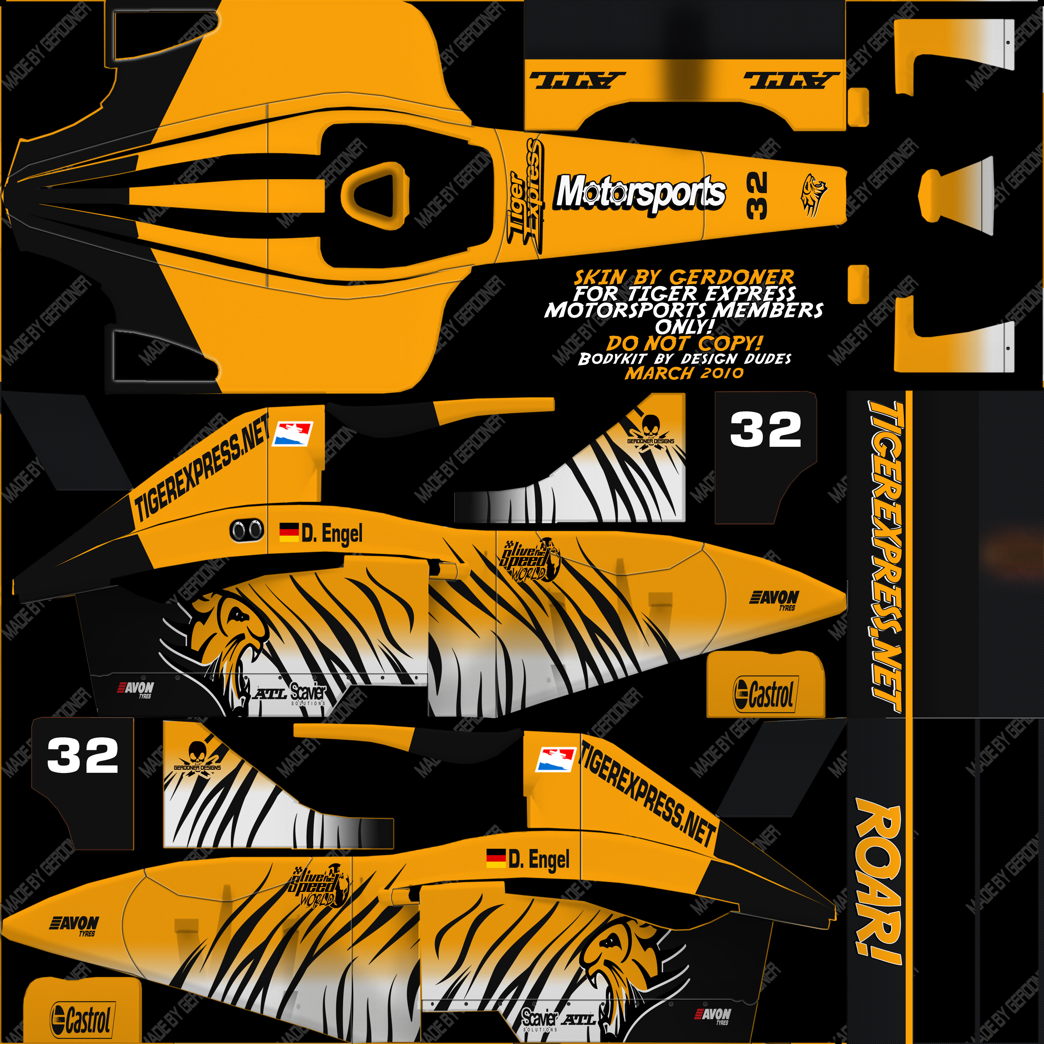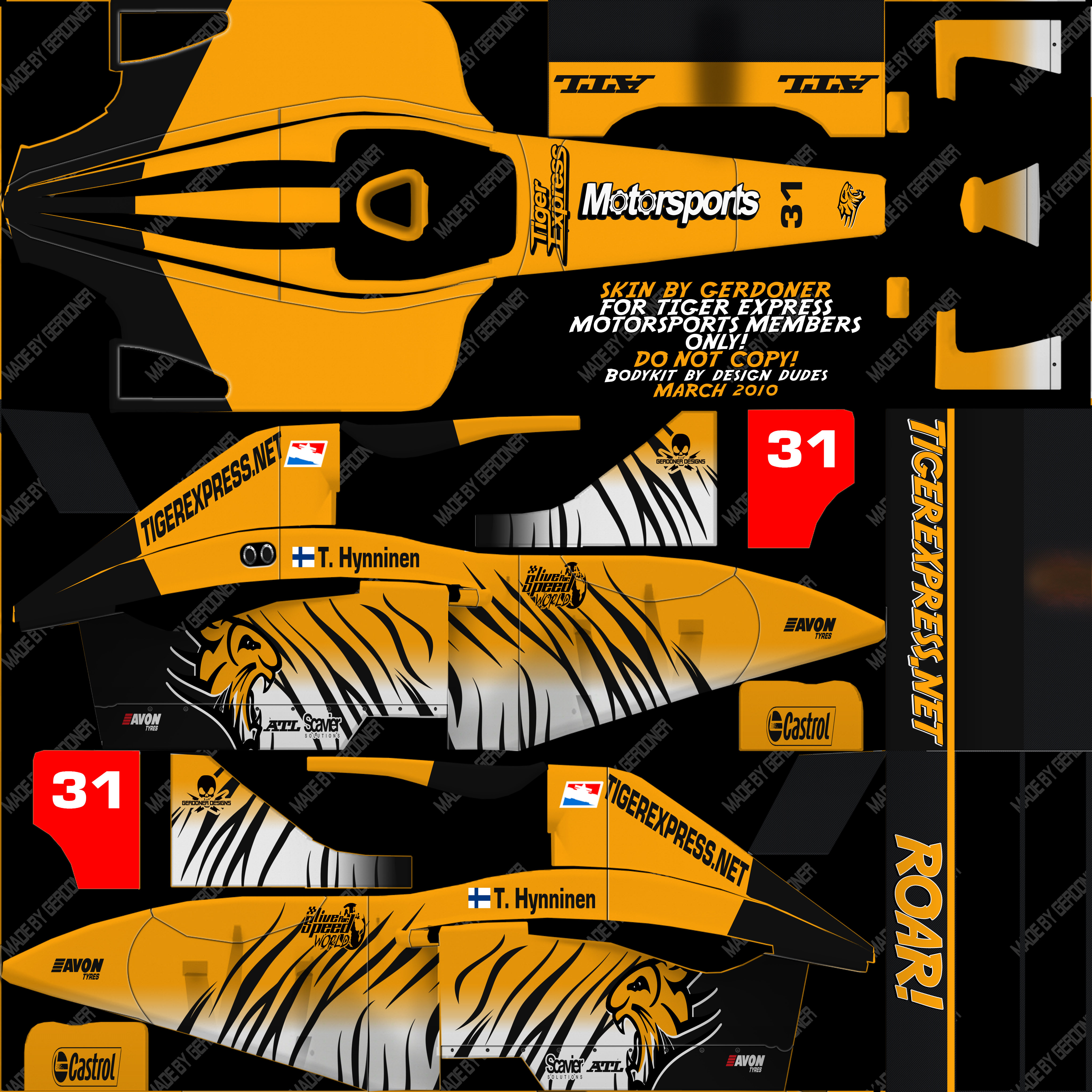 Tiger Express Motorsports skins for Round 07 TEM #31 Timo Hynninen #32 Dominik Engel #33 Yann Laprevotte WTEM #40 Chris Ford #41 Lims Chebbi #42 Niko Puntola Thx to Gerdoner for his hard work! Attached images