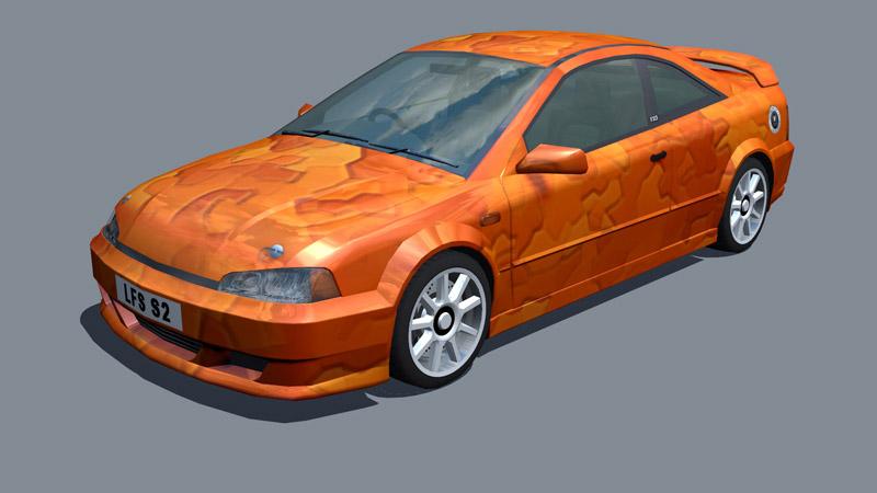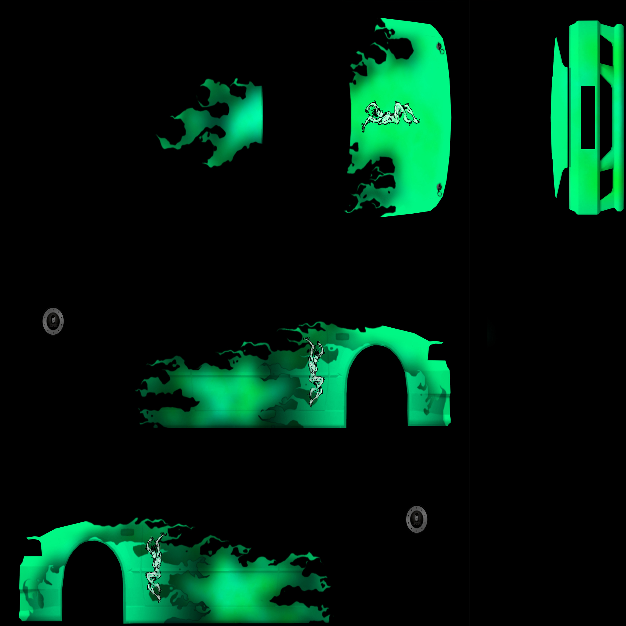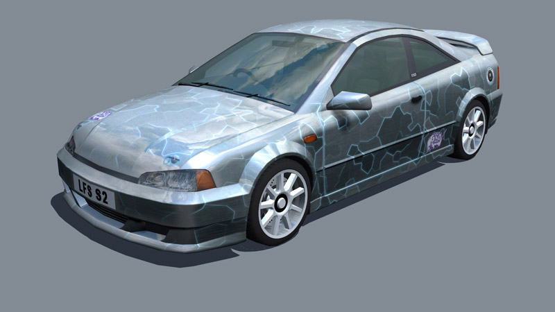 002> I was inspired by an aluminium bodykit tutorial i saw somewhere, and decided to try a brushed stainless look by adding noise to the image, and then motion blurring. The decals, i am ashamed to say, are someone elses