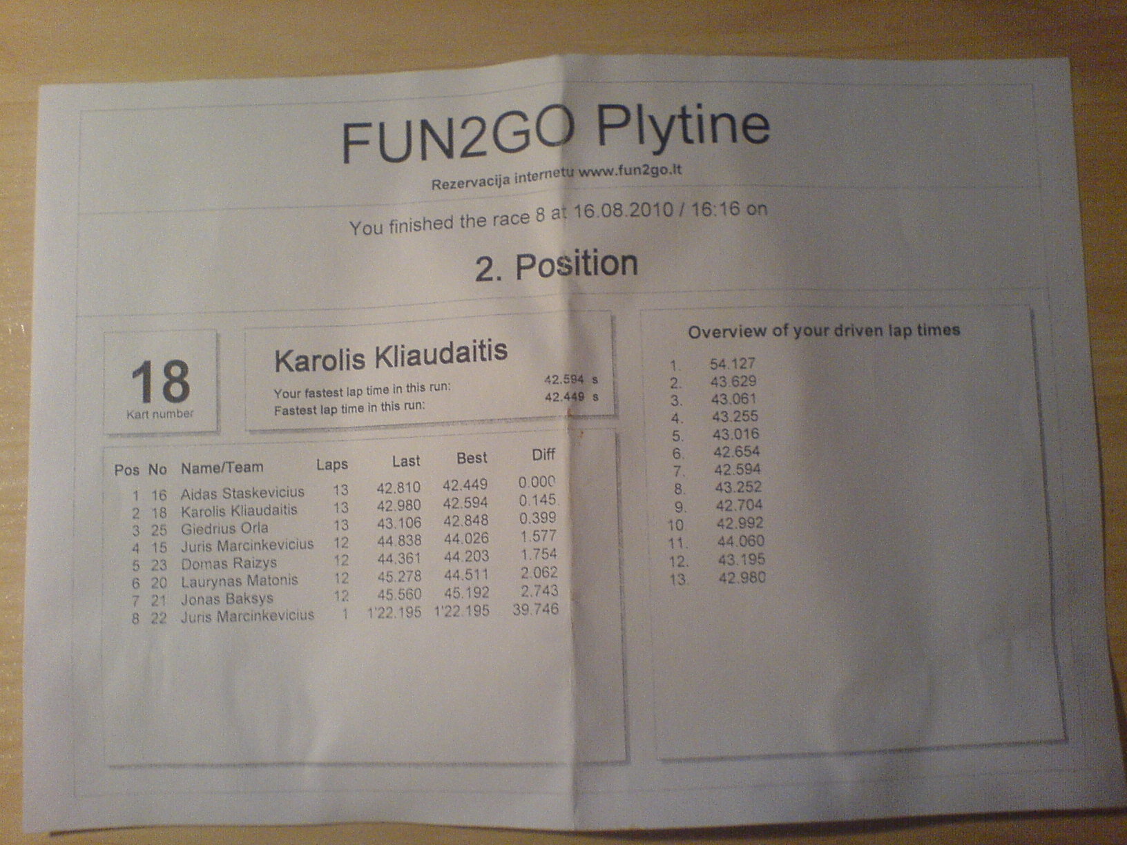Hello all! One day i had an idea, that we here, in Lithuania, have rather big community of racers, who play LFS, and i've decided that we could make something like our friends in UK have done - a kart meet. After few weeks of organisation, we can talk about it. On a sunny, and really hot monday, 8 LFS racers from all over Lithuania gathered in capital city - Vilnius. We met in "Fun2go" Plytinė karting track,and in this video you will see what happend there. I would like to inform you,that one person, who was responsible of taking his camera forgot it,so we shoot videos and took pictures with mobile phones,so video quality is low, but still, it's better than nothing. You will see only 8 people in this video, because it was like a test meet, and we had invited only people, that we know for some time in LFS, but we hope this will be a nice tradition and we will meet every year, for some karting and having fun.