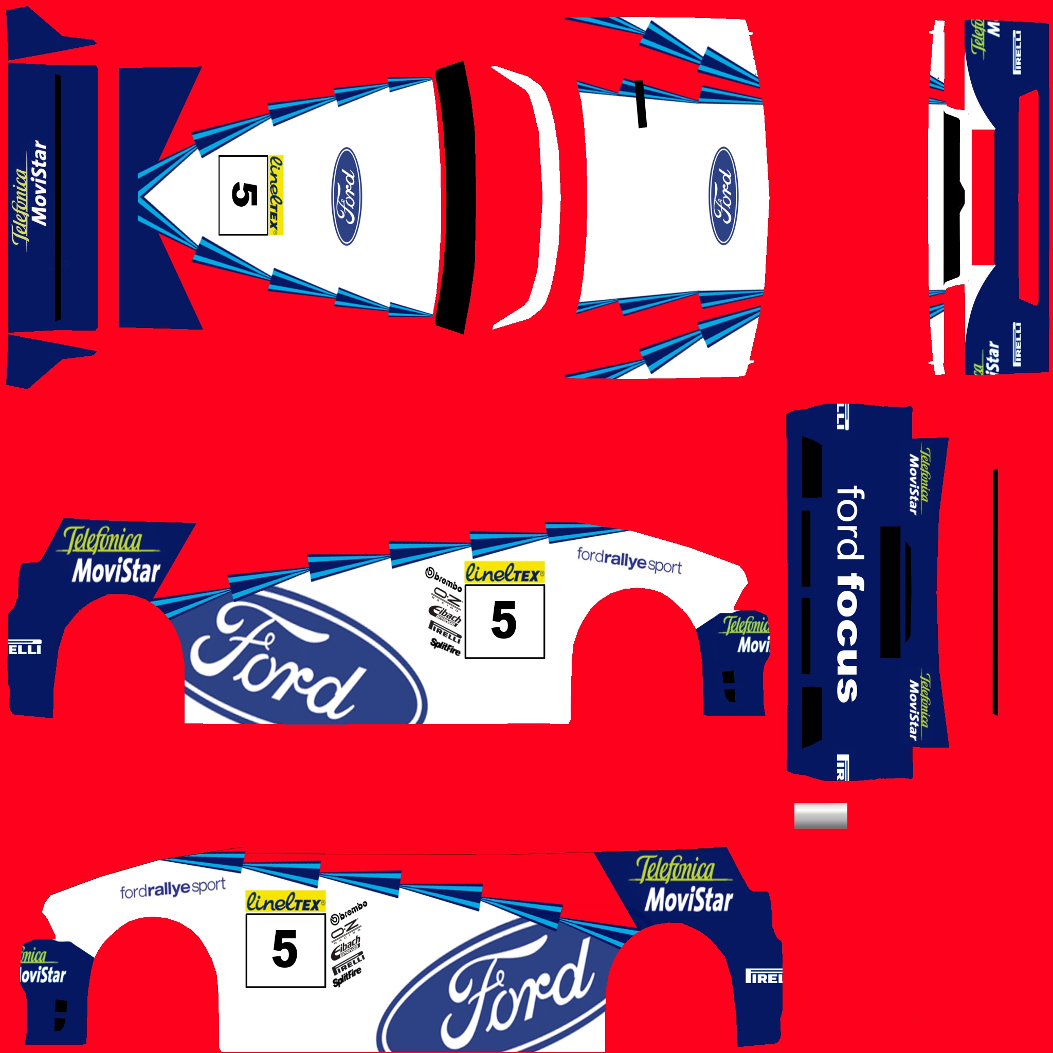 Ok then, Skin finished and uploaded, think i got it as close as i could, there are some differences but they are down to either different shapes in the two cars and the fact that in every pic of the focus the logos/colours are slightly different. Any other errors i missed or you find let me know and I'll fix them.