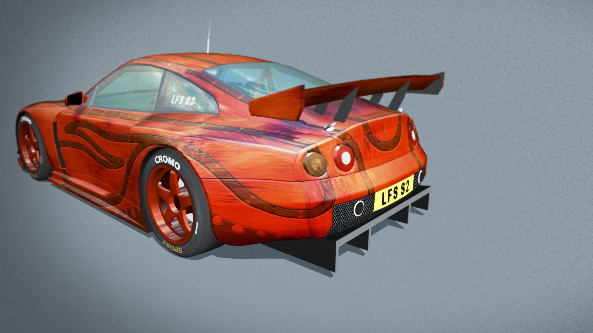So I thought I'd see how the FZR would look if it was made from wood and then carved. I used a striping pattern I made for another car for the decoration.