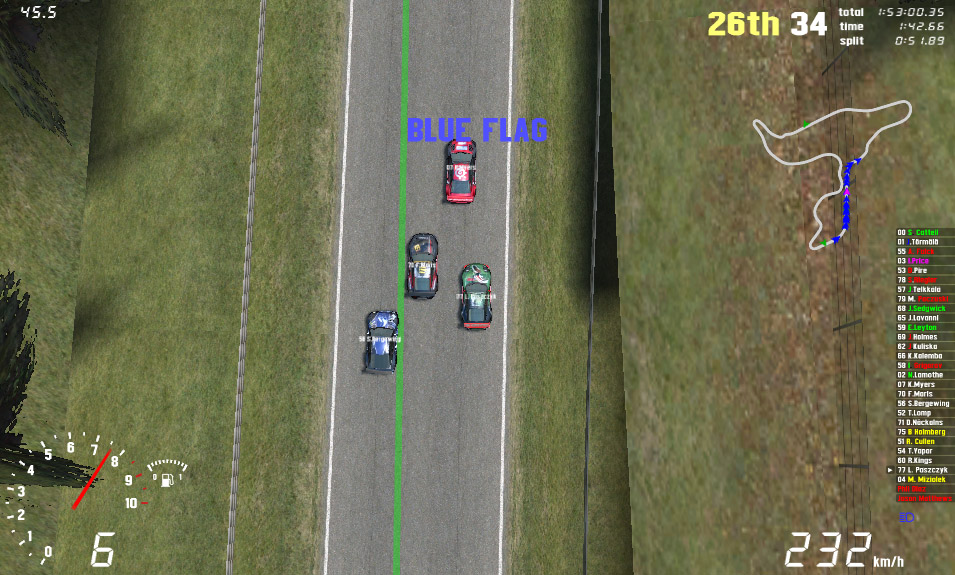 Quote from boothy :Erm it wasn't you in the car, it was Kev. The rest of the post makes no sense, you might want to check the replay again to see that although 77 shouldn't have hit you on the way through, your car should've moved left to allow them through.