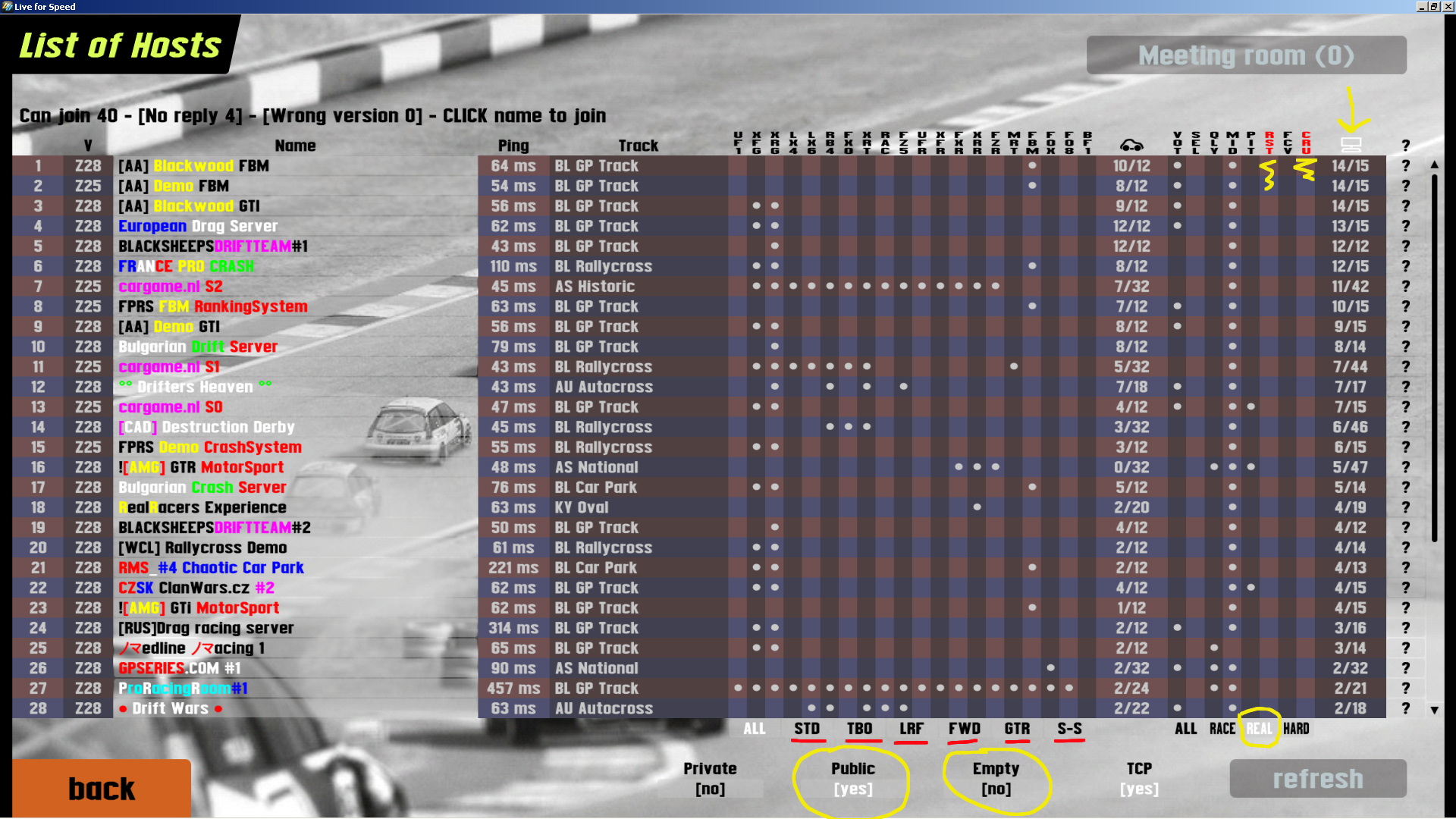 People keep on complaining on the forum but dont join in the racing. At the moment there are not enough people who are active in public server racing to fill in the all the various combos; I'm just happy to have the cargame.nl servers (S1/S2/demo and GTR) so that I could have a bit of varied and decent racing.