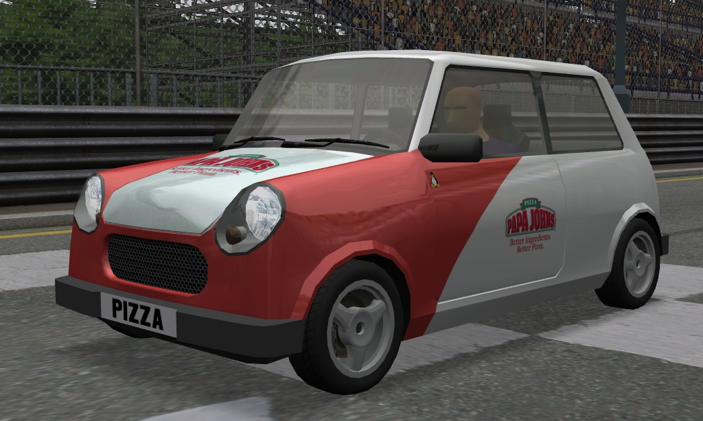 Maybe a pic of a pizza slice at the back and/or the roof of the car?