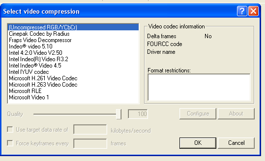you could install an additional codec for xvid / H264 DirectShow support. Then you'll have xvid / H264 to select from in that list.
