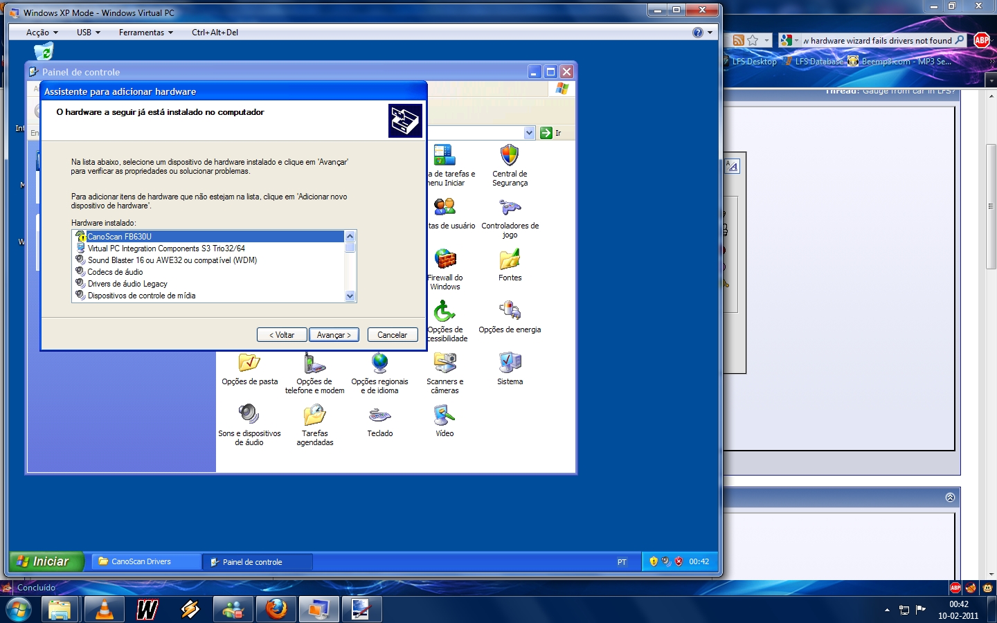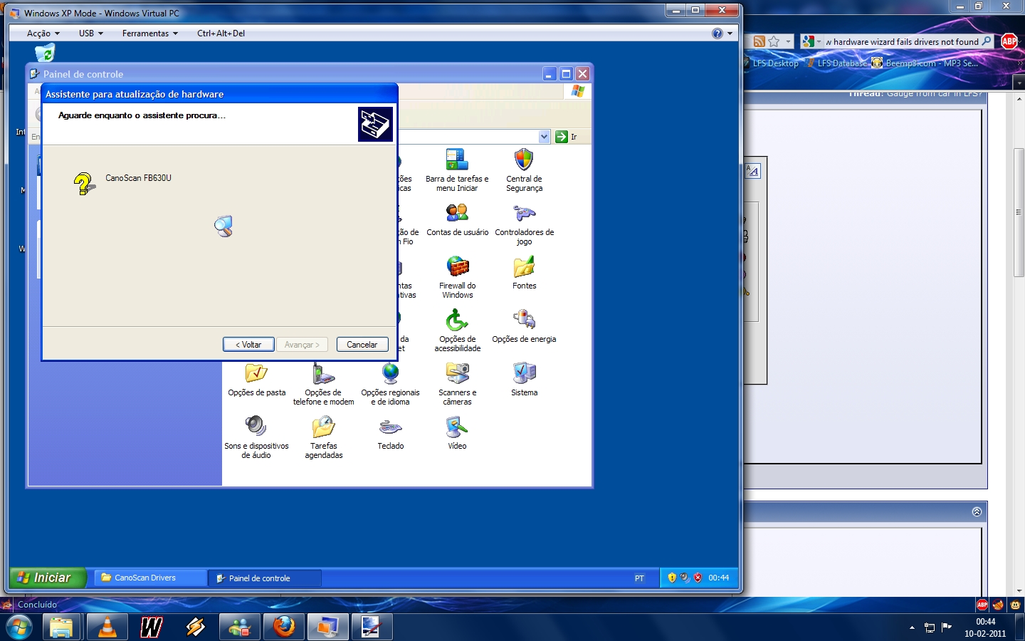 I have been trying to get a fairly old scanner to work (Canon FB630U) with Windows XP (it's not compatible with Windows 7) and I'm using the latest version of Virtual PC, so I can connect the scanner to it.