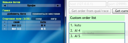 LFS Reorderer - utility for Live For Speed, which provided a drag'n'drop interface to reorder drivers before the race start.