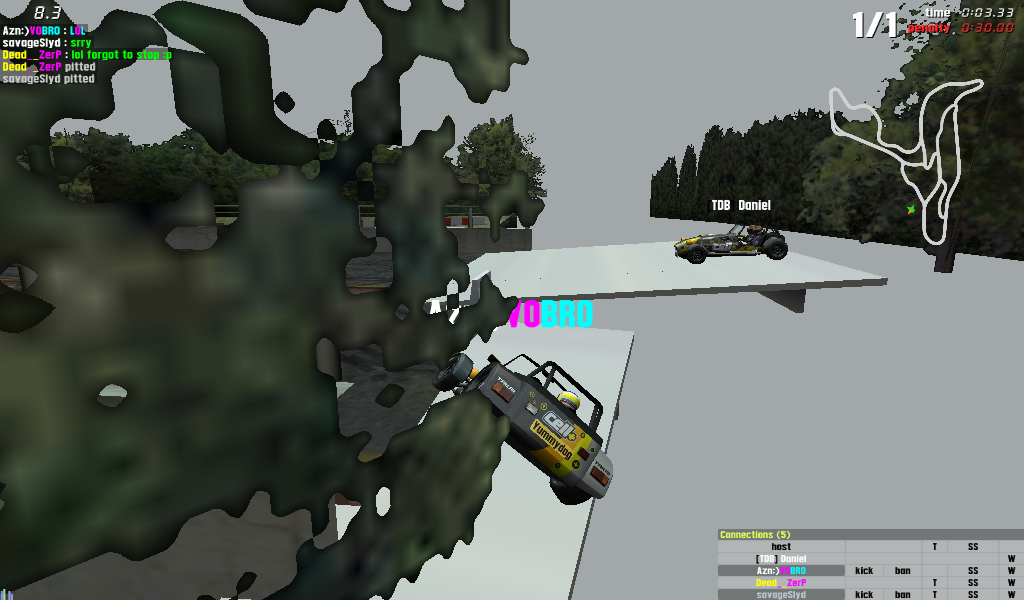 Scawen, I'm kinda disappointed with this fix, now it just says "RETIRED". What am I supposed to do when that happens? If i hit reset again, it says retired again...Why can't you make it reset the car to the nearest solid point on the track? That retired message is really not a fix, it's just a pointless workaround I'm afraid.