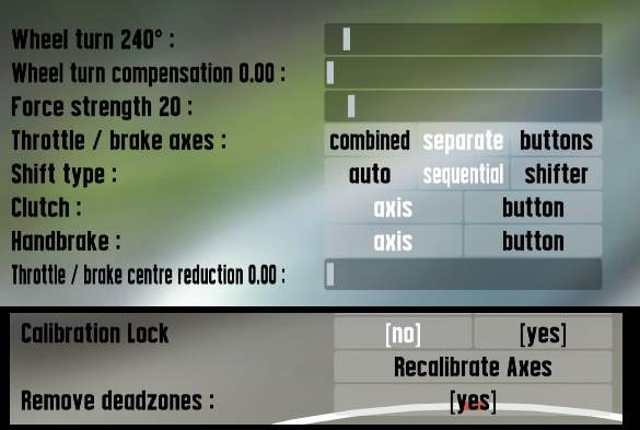 - ForceFeedback settings ingame is mostly a matter of feeling but dont try to use to much is what i can advice in order to give your wheel more then 1 year.