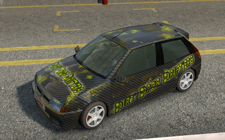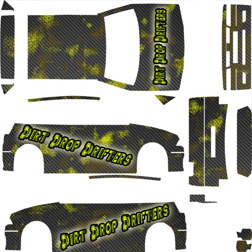 I need a skin for my new team. It is supposed to have a black underlay with yellow and brown highlights(messily, all over the place) and the words "dirt drop drifters team" all over it. (for XRG, later read my post in team threads and make for those cars
