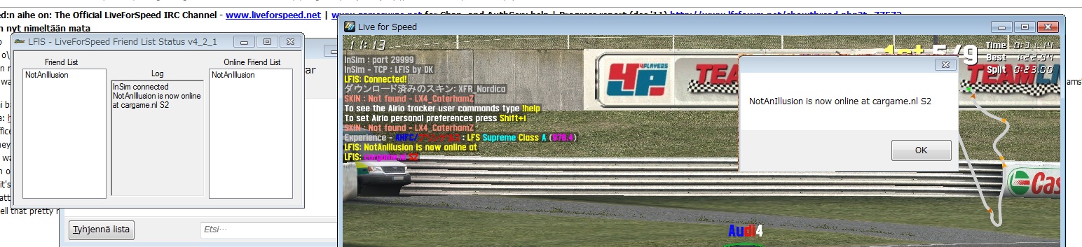 There is no need to minimize LFS and you can see who is online using the InSim by typing, '/o friends'. Well if you already use lfsworld to manage your friends I am sure you won't use this one unless you use InSim. But in case you don't want to have an browser and just a program for your friends, this one will do its job!