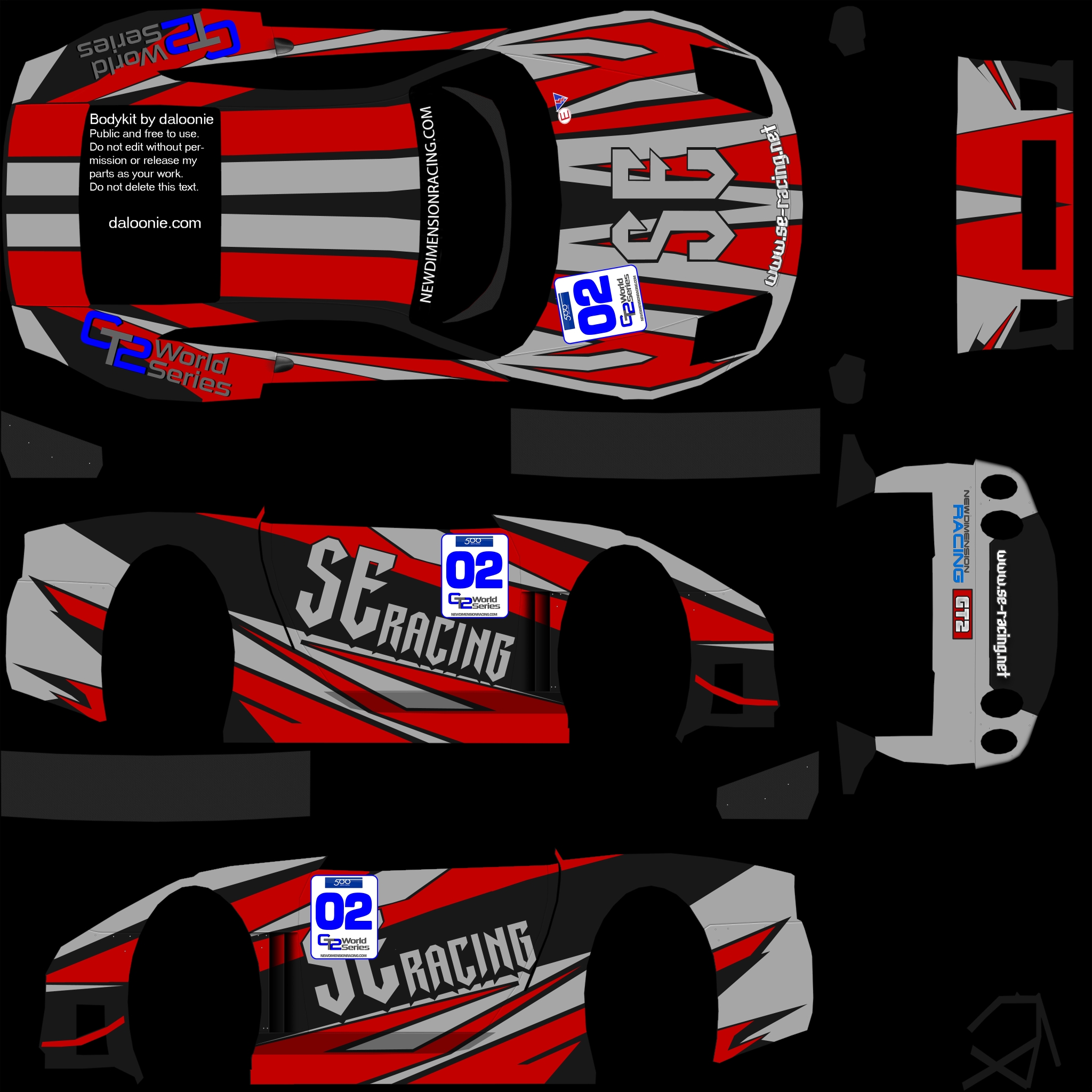 Round 1 skinpack (updated): http://newdimensionracing.com/ ... 2011/GT2WS_r1_skinpack.7z Extract files to data\skins_dds