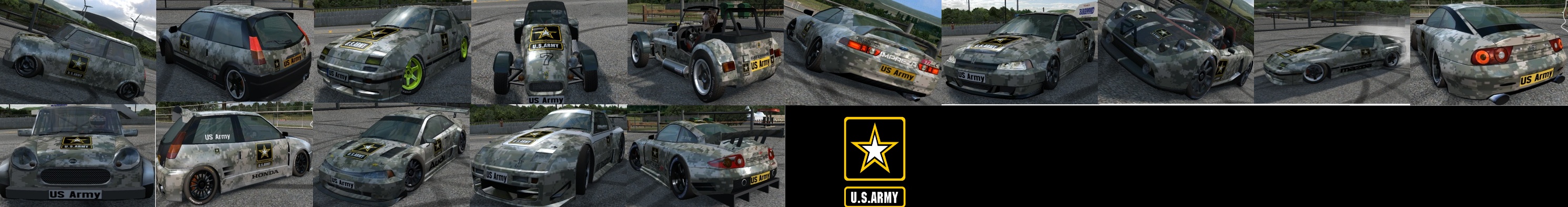 Here is my skinpack that I made of United States Army. I used the digital camo as the regular "paintjob" so to speak. BIG THANKS to everyones bodykit's i used -TaDy, Bean0, Daloonie and I believe some others. Feel free to use them as they are public.