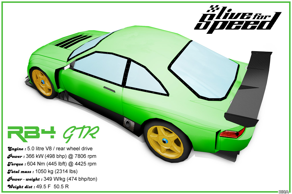 I still think that making a "RB 8" would be a great idea, we have no V8 powered cars, and they need to be represented in a GTR class. Often you will se that race regulations allow bigger NA displacement engines, than the turbocharged ones. Also 4wd should be removed and the car should be RWD like any other GTR type car.