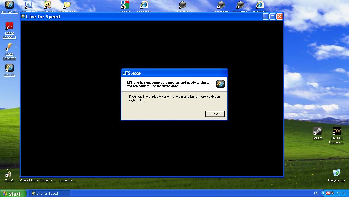 Quote from kimd41 :Have you tried redownloading LFS from the website and doing a fresh install? Yes I,v found somthink that may help http://www.lfsforum.net/attach ... mp;stc=1&d=1324723794 Attached images