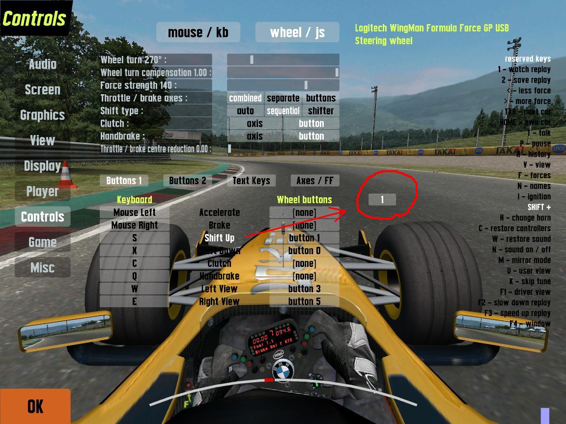 Controls menu -> Pressing Shift Up button -> Number 1 appears