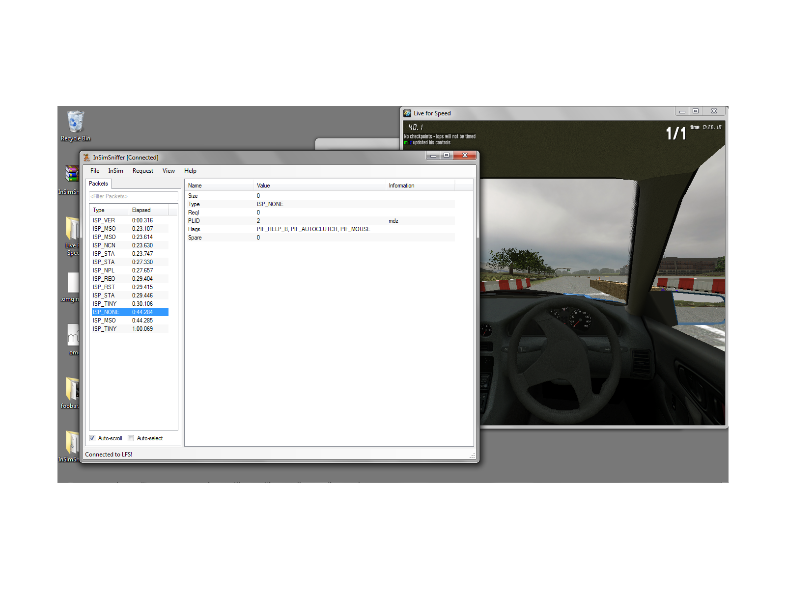 Quote from DarkTimes :InSim does not have an IS_NONE packet. In fact, I'm struggling to even conceive of how such a packet would look. What is it exactly that LFS sends when the user updates their controls?