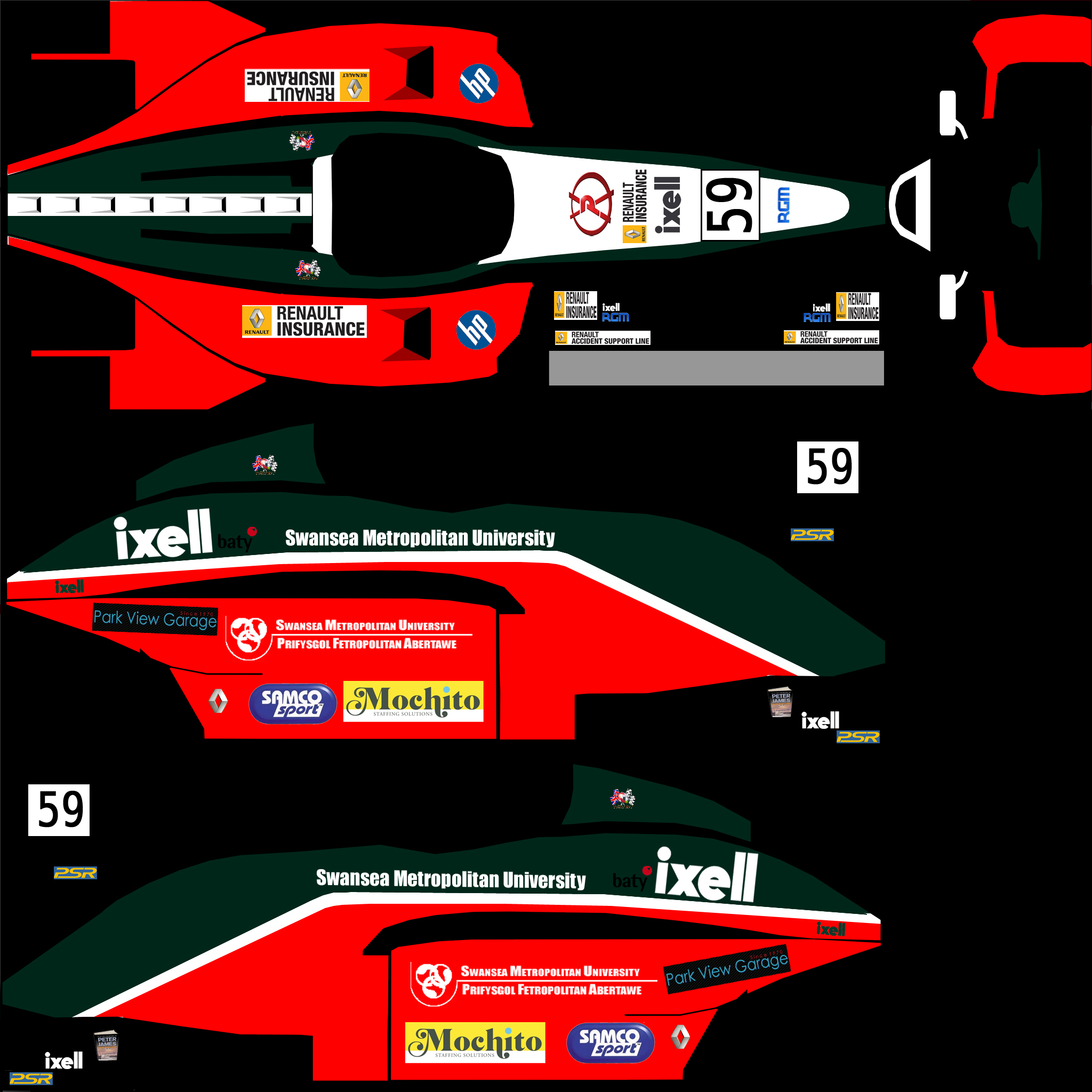 Hey folks. Would it be possible for someone to make me a skin for the FOX based on our university's 1996 Formula Renault colour scheme? Although our car looks a little different from the stock Tatuus chassis as it raced back in the day, I would love to see it skinned in LFS. There are plenty of photos of the car here on the University team page (right click - open in new tab for larger image). I can take better, close-up photos of any part of the car if required. Also note that the dark green colour on the car is a strange one, in photos it appears a bit darker than it does in the flesh, but it's a sort of British-racing-green with a hint of dark blue... if that makes sense?
