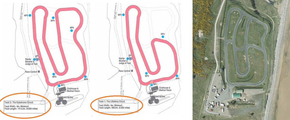 Couple of layouts based on the main Golspie layout, as named and used by Caithness Car Club - Kylestrome and Littleferry, along with a layout just using the perimeter part of the track.