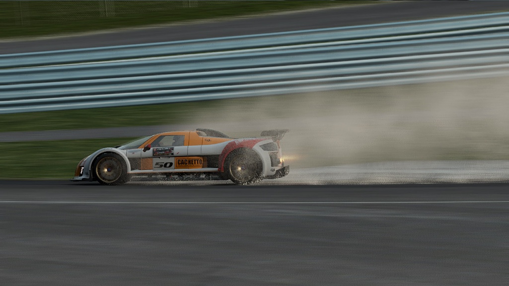 No. No wet reflecting roads, no physic interaction, no rain tires, no clouds yet. I guess it will take at least a month till playable in rain (I doupt there will be a rain option just for the spray effects )