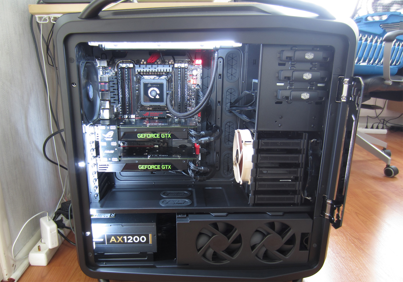 Changed the fan setup inside the case slightly aswell, Noctua cream/brown wasn't going well with the theme. Performance wise, the build is now complete.