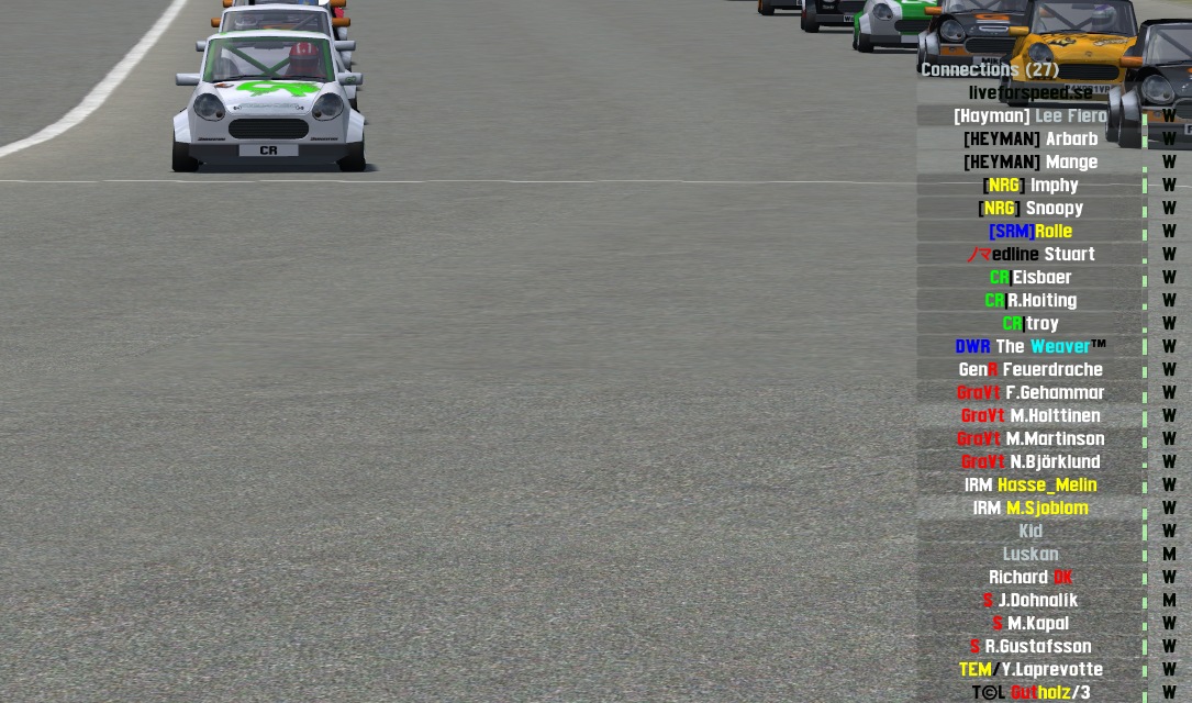 O-T 2: currently when a guest on track is lagging there is LAG (seconds) instead of his nickname, informing us of his lag. What about replacing it with: username (seconds). I don't know of any other way to identify who is the person who is lagging but to manually click through the connection list until i get to that person. Most know that when seconds in brackets appear it is lag, that's why i suggested to put username in place of LAG and save some space